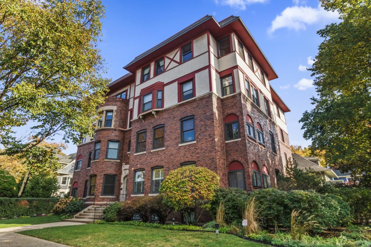 Wonderful top-floor in a vintage quintessentially Evanston condo. Treetop views from your own private balcony with a view of downtown Evanston. Large gracious rooms, hardwood floors, updated windows that bring in lots and lots of light. Enter a gracious foyer, and turn to the formal living room with wood-burning fireplace surrounded by built-in bookshelves, as well as a separate family room. The other direction brings you through a spacious dining room, and to three generous bedrooms and a custom-built Benvenuti & Stein kitchen with Sub-Zero refrigerator, Bosch dishwasher, and hidden Bosch washer & dryer. Private storage in basement as well as bicycle room, and private parking space is included. Great location, close to transportation, lakefront, Main street shopping and short distance to downtown Evanston.